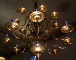 Auf unserer „Lichterkrone“ kann folgende eingravierte Widmung entziffert werden: „Harmen Geertsz van lutiewolde gift deze Kroon te hieroove ter eere an de Kerk 1687“ (Hermen Geeritsz von Lütjewolde gibt diese Krone zu Ihrhove zur Ehre an die Kirche 1687).